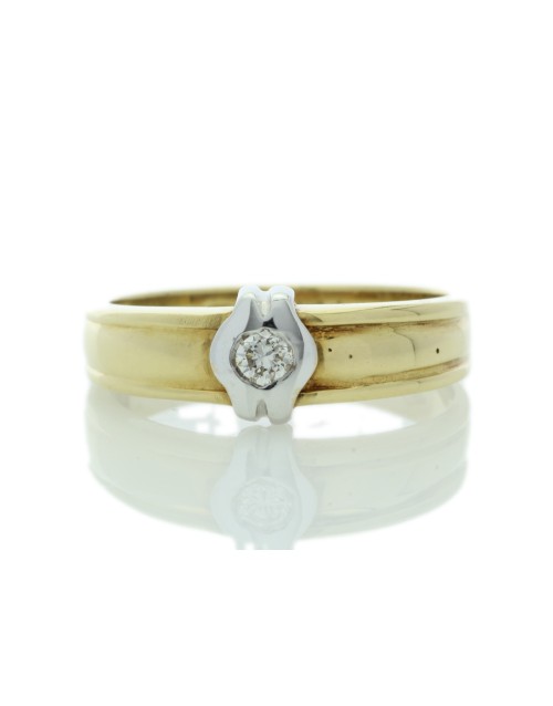 A natural round brilliant cut diamond 0.21 carats set in an elegant 18ct yellow gold ring with a white gold rub over setting.