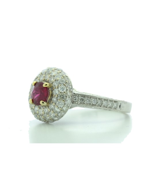 18ct White Gold Cluster Diamond And Ruby Ring (R0.73) 1.90 Carats